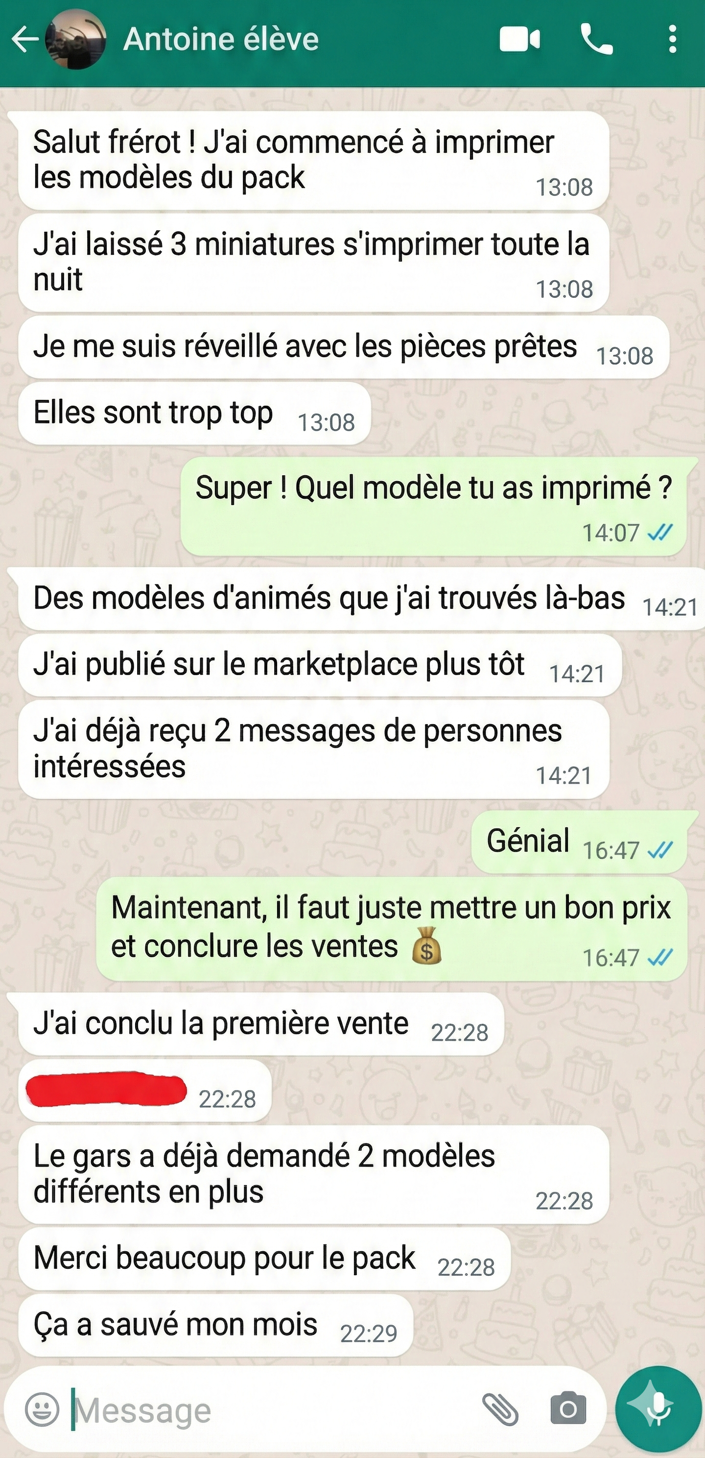 Ce pack existe justement pour simplifier la vie de ceux qui veulent commencer à gagner de l’argent avec l’impression 3D, sans complications.